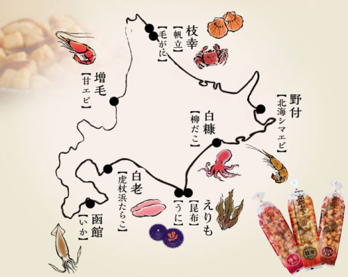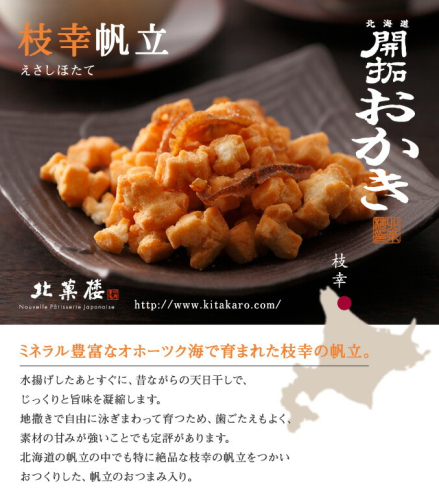 開拓おかきの特徴は、各おかきに北海道産の海の幸が乾燥された状態で入っていて、それも美味しいのですが、やはり基本であるおかきがおいしいんです。