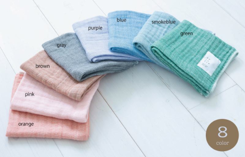 特殊な織り方で独特な風合いのガーゼ生地。 速乾性に優れ、肌にやさしく、吸水性が高いことが特徴です。 純銀の糸『ミューファン(R)』を織り交ぜているので、抗菌・防臭効果が持続的に発揮します。また色落ちに強いスレン染の色糸を使用しているので、ナチュラルな風合いが長持ちします。 原材料:綿100%、製造地:泉佐野市