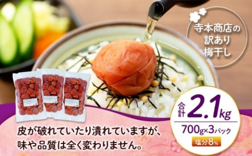 訳ありつぶれ梅干し しそ 700g×3パック 合計2.1kg 塩分 8%