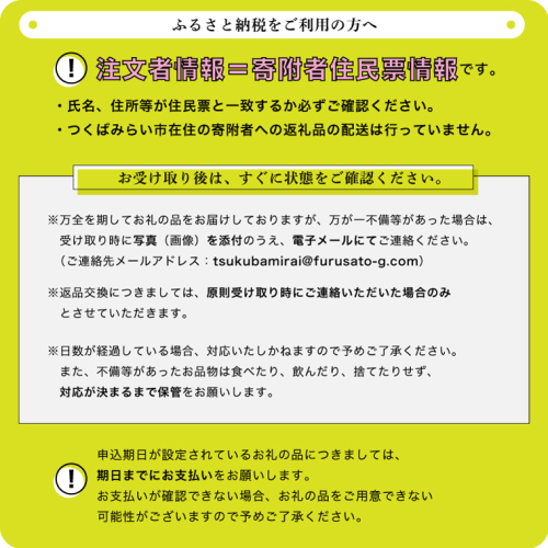 ※お米は生鮮食品です。ご到着後はお早めにお召し上がりください。<br>※お米が到着しましたら、必ず箱を開けて中身をご確認してください。破損等がある場合にはご連絡ください。<br>※虫やカビが発生したことによる返品・交換は受付しておりません。<br><br>※お受取り後はすぐに状態をご確認ください。万全を期してお礼の品をお届けしておりますが、万が一不備等があった場合は、受け取り時に写真(画像)を添付のうえ、電子メールにてご連絡ください。<br>(ご連絡先メールアドレス:tsukubamirai@furusato-g.com)<br>※返品交換につきましては、原則受け取り時にご連絡いただいた場合のみとさせていただきます。<br>※日数が経過している場合、対応いたしかねますので予めご了承ください。また、不備等があったお品物は食べたり、飲んだり、捨てたりせず、対応が決まるまで保管をお願いします。<br>※申込期日が設定されているお礼の品につきましては、期日までにお支払いをお願いします。お支払いが確認できない場合、お礼の品をご用意できない可能性がございますので予めご了承ください。