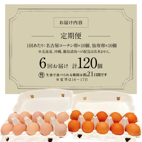 • 【6ヶ月定期便】名古屋コーチン卵・仙寿卵お試しセット(各10個入り)×6回(計各60個) [006K04-T]