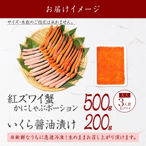 3593. 紅ズワイガニ ポーション 500g いくら醤油漬け 200g 紅ズワイ 紅ズワイ蟹 紅ずわいがに カニ かに 蟹 いくら イクラ 魚卵 海鮮 送料無料 北海道 弟子屈町