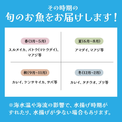 魚種は旬の6種類をこちらでチョイスして発送させていただきます。