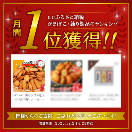 小分けにされたさつま揚げが5袋も入っていて種類も5種結構な量もありお味も美味しく大満足でした