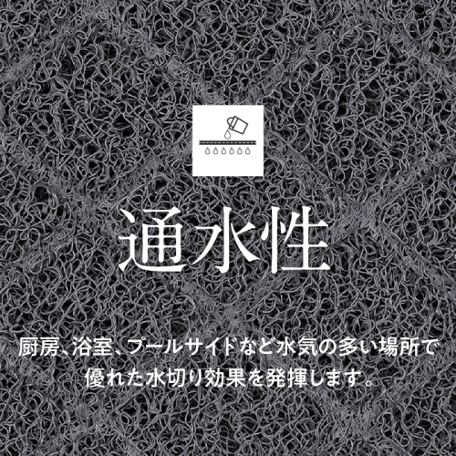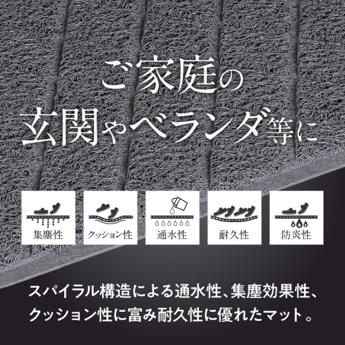 スパイラル構造による通気性、集塵効果性、クッション性に富み、耐久性に優れたマットです。 ご家庭の玄関やベランダ等に適しております。 ※4辺はふち加工が施されています。 ■地場産品基準 原材料仕入れ、配合、成型加工、巻取、配合、乾燥接着、巻取、カット、ウェルダー、カット、検品梱包までの全工程を区域内で行うことにより付加価値が生じているもの。