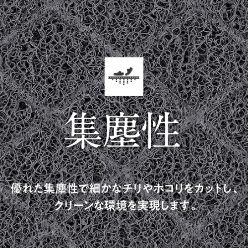 スパイラル構造による通気性、集塵効果性、クッション性に富み、耐久性に優れたマットです。