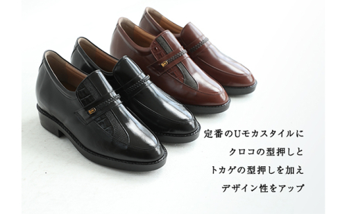 ビジネスシューズ 本革 革靴 カンガルー革 紳士靴 デザインモカ 7cmアップ シークレットシューズ No.235 ブラウン 雑貨 日用品 BN002