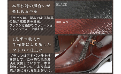 - ビジネスブーツ 紳士靴 デザインモカハーフブーツ 5cm シークレットブーツ 4E ワイド No.763 ブラック BN002