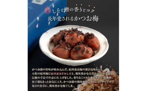 日本一の梅生産地、紀州の梅に紀州産のきざみしそと、風味豊かで良質なかつお節を加え、丹念に仕上げました。