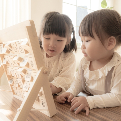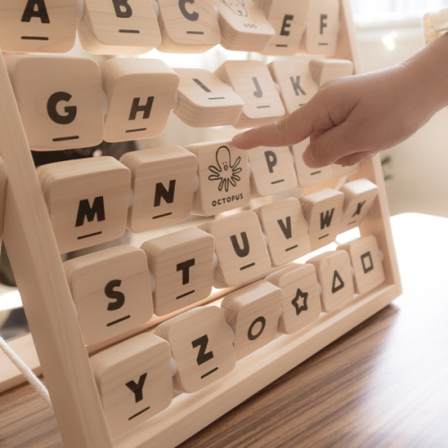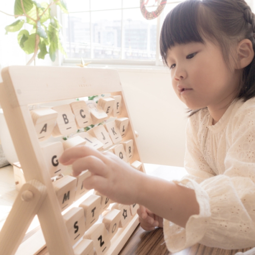 遊びながらアルファベットが学べるおもちゃです。アルファベットの裏面のイラストを見ながら、楽しくABCを覚えることが出来ます。木製カードをクルリと回すことで、指先の巧緻性も養うことができます。和歌山産の檜を使って、丁寧に一つ一つ手作業で仕上げた無塗装の檜のおもちゃです。安全認証(CE認証・STマーク)にも対応しています。