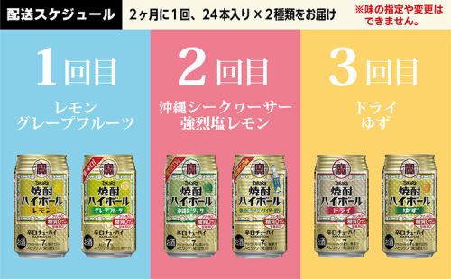 CE125 【3回定期便(隔月)】 タカラ 焼酎ハイボール 350ml 144本 人気6種 (24本×2種×3回) [ タカラ 宝 寶 Takara 焼酎 定期便 酎ハイ チューハイ ハイボール 7% レモン グレープフルーツ シークヮーサー ドライ ゆず 人気 おすすめ ご自宅用 普段使い 健康志向 プリン体ゼロ 糖質ゼロ 甘味料ゼロ プリン体0 糖質0 甘味料0 みつい 長崎県 島原市 ]