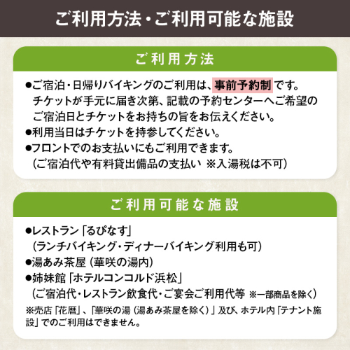 ※売店「花暦」、「華咲の湯(湯あみ茶屋を除く)」及び、ホテル内「テナント施設」でのご利用はできません。