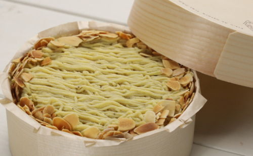 北海道産産のバター、スペルト小麦粉、甜菜糖の含蜜糖などから作ったクッキー生地とカリフォルニア産のアーモンドを使ったアーモンドクリームで焼き上げたタルト生地に、たっぷりの渋皮つきの栗を敷き詰めて、ホイップクリームと国産栗のマロンペーストで仕上げました。