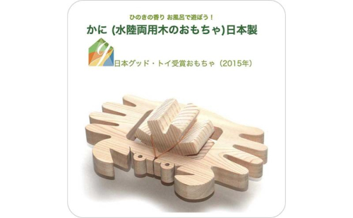 かに (水陸両用 木のおもちゃ) が入っています。おもちゃの材質はひのき材 日本製 psc