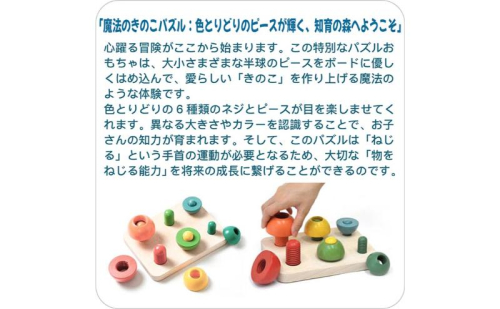 • 木のおもちゃ/きのこのこのこ psc  積み木 パズル 0才~100才 バリアフリー 知育玩具 おしゃれ 誕生日ギフト~出産祝い 男の子 女の子 赤ちゃん おもちゃ ねじ 脳トレ 木製 高齢者 老人 リハビリ 玩具療法