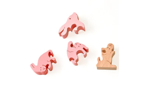 - 愛らしい3羽のうさぎのピースを組み立てると大きなウサギになる知育パズルが入っています。おもちゃの材質はブナ材 日本製 psc