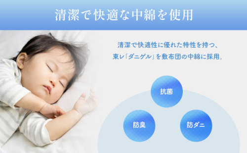 生地は日本製生地を採用し、中綿にSEK加工を施した、抗菌防臭・防ダニの東レ「ダニゲル」を使用。
