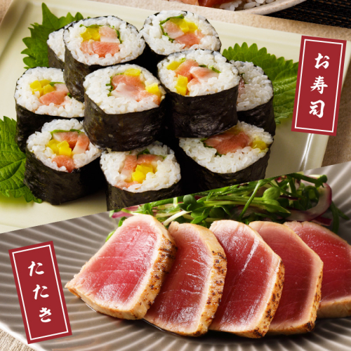 まぐろの柵を軽く湯引きして氷水で絞めれば”タタキ”風に。