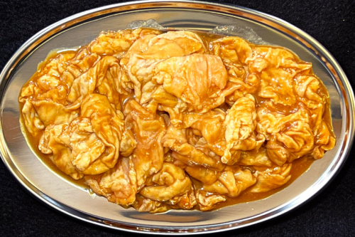 てっぽうとは、豚の直腸のことで、トロトロ感と脂肪のうま味が魅力の部位です。