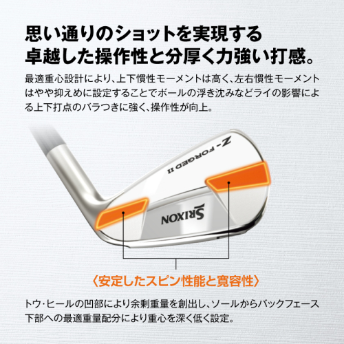 安定したスピンコントロール性能により精緻な攻めを可能にする、スリクソン Z-FORGED II アイアン。
