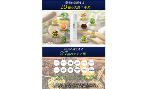 頭皮への負担を軽減した馬油を成分とした薬用育毛剤です。 育毛剤は、爽快感等の使用感がわかりやすい製品が多くございますが、これはアルコールが配合されているからです。頭皮にとってアルコールはたんぱく質を傷つけたり、頭皮を乾燥させてしまうことがあります。 私たちの『ウーマフリード』はアルコールをはじめとする、防腐剤、殺菌剤、石油系活性剤、合成色素、紫外線吸収剤、鉱物油、香料の8つの頭皮に刺激を与えるといわれている成分を含まない、オールフリー育毛剤を作りました。 頭皮への刺激となる成分をなくすことで、頭皮への負担を軽減し、成分をなじみやすくします。 主成分の馬油が、頭皮の角質層までしっかり浸透を促します。皮膚の内側にしっかり有効成分を届け、毛根の環境を健やかに保つ働きがあります。 頭皮が乾燥している方や、髪にハリ・コシが欲しい方は、是非お試しくださいませ。
