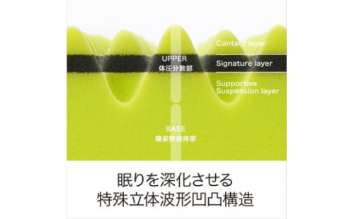 ■【1200Point 全身を支える】約1200個の点からなる、表面の凹凸構造が体圧を分散し、ベース部が身体をしっかり支えます。中間層の新ウレタンフォーム「レフトフォーム」採用でクッション性と通気性が向上。圧迫感が緩和され、寝返りもスムーズにリラックスしながら睡眠。気持ち良い寝覚めが得られます。