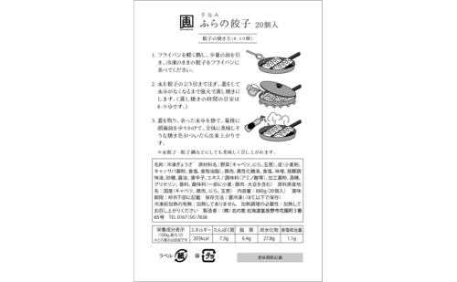 - 【北海道富良野市】手包みふらの餃子 20個入 (中華 冷凍 即席 食品 簡単 加工品 調理不要 おかず 手作り 道産 富良野 ふらの 北海道 送料無料)