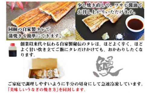 <職人手焼き九州産うなぎ 白焼き2尾(4切れ)計260g前後>