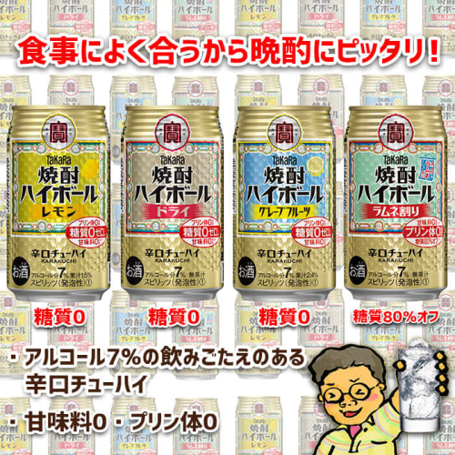 - <TaKaRa焼酎ハイボール レモン・ドライ・グレープフルーツ・ラムネ割り 350ml×各24本 計96本>翌月末迄に順次出荷