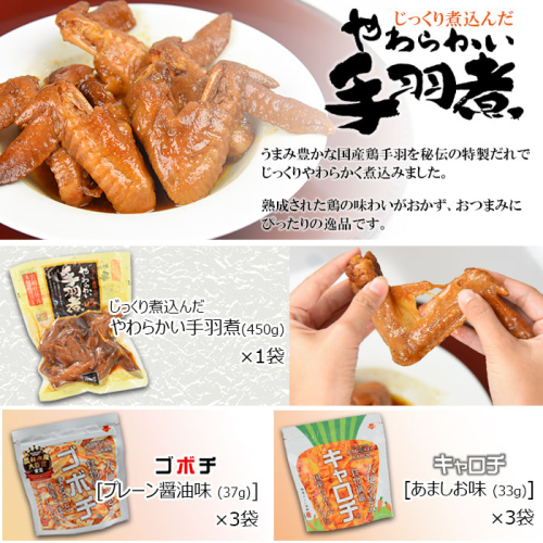 - <野菜チップス「ゴボチ」「キャロチ」(合計6袋)+手羽煮セット>
