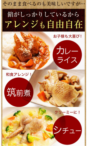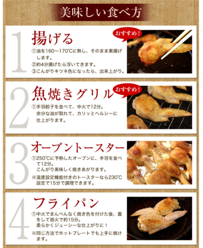 【手羽餃子】手羽先、野菜(キャベツ、たまねぎ、にら)、合挽肉(宮崎産牛・豚)、でん粉、食塩、砂糖、にんにく、清酒、ごま油、コショウ、調味料(アミノ酸等)