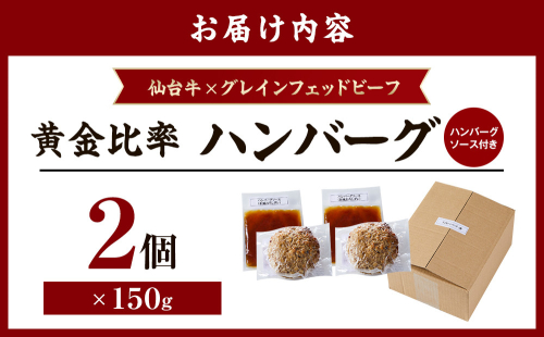 仙台牛×グレインフェッドビーフ 黄金比率ハンバーグ 150g2個セット ハンバーグソース付き