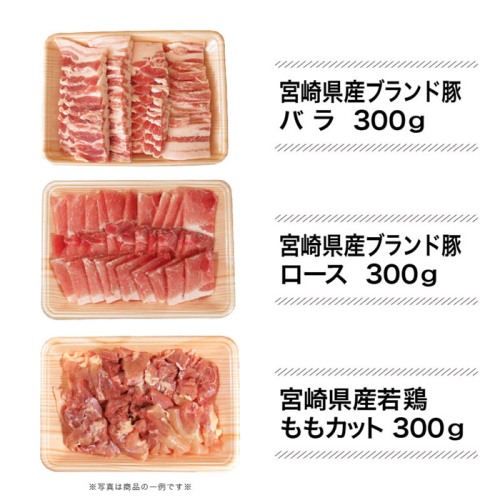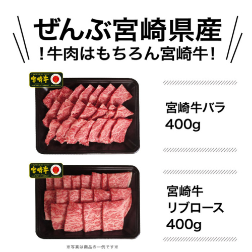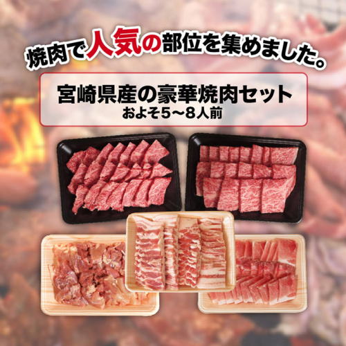 宮崎牛バラ、宮崎牛リブロース、宮崎県産ブランド豚バラ、宮崎県産ブランド豚ロース、宮崎県産とりモモ焼肉カット