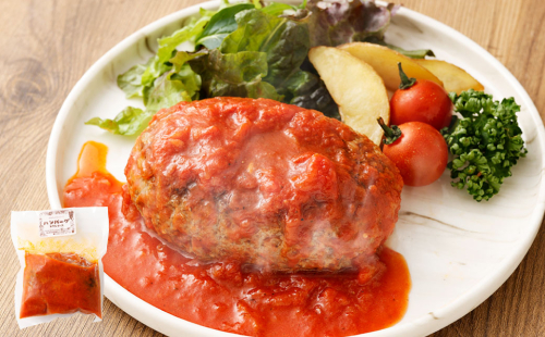 ハンバーグデミグラスソース、ハンバーグきの子のクリームソース、ハンバーグトマトソース、ハンバーグ素焼きのまま