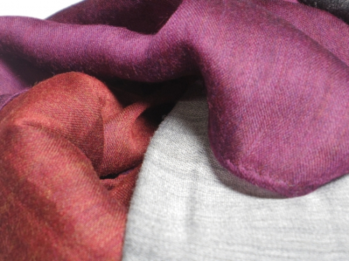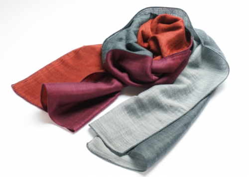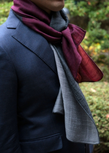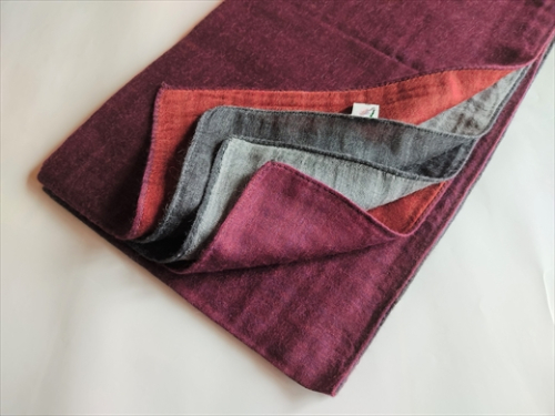 - 富士桜工房「やすらぎストール」シルバー×グレー×ダークレッド×パープル 男女兼用ウール&シルクの二重ガーゼ構造 FAA4017