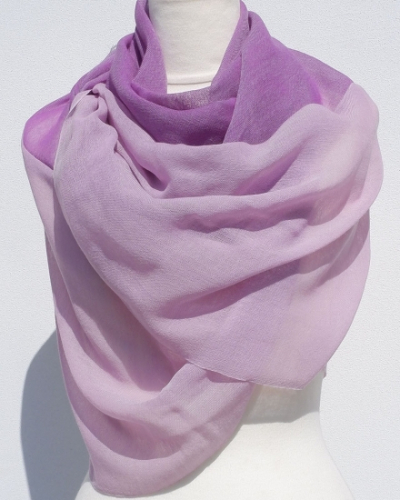 富士桜工房ウールガーゼストール「KASANE」紅藤色(ピンク×パープル)無縫製 二重織 FAA4007