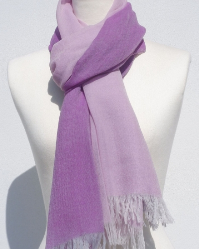 - 富士桜工房ウールガーゼストール「KASANE」紅藤色(ピンク×パープル)無縫製 二重織 FAA4007