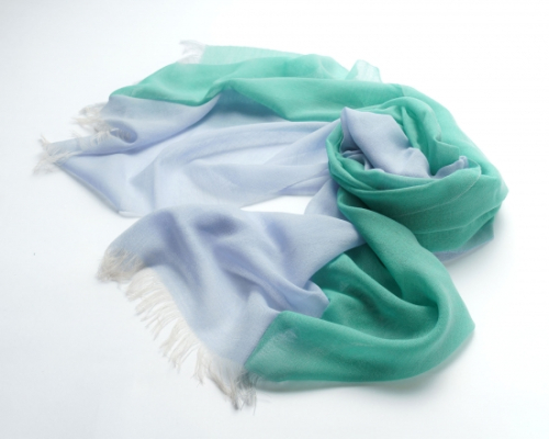富士桜工房ウールガーゼストール「KASANE」小栗色(ターコイズ×ライトブルー)無縫製 二重織 FAA4008