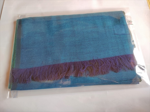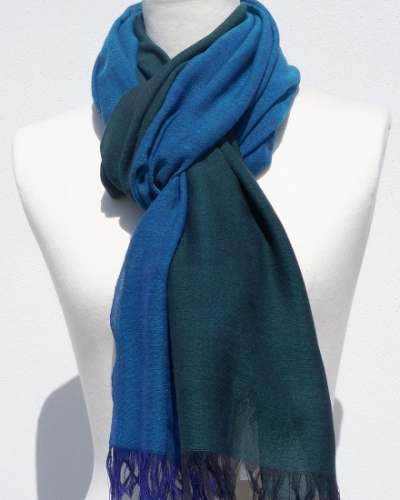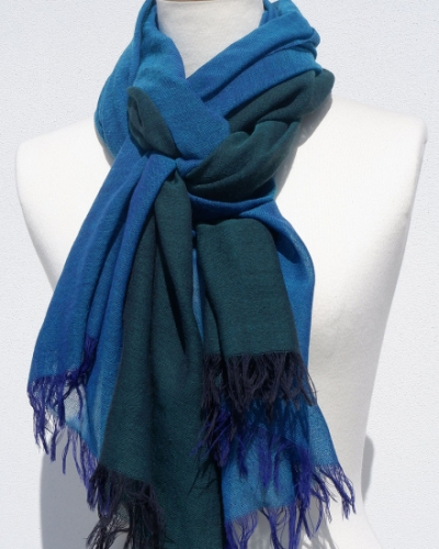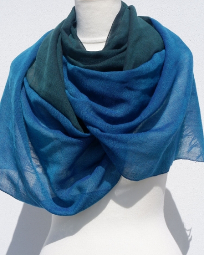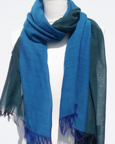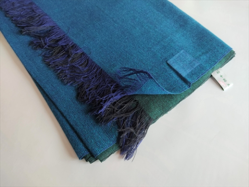 富士桜工房ウールガーゼストール「KASANE」孔雀色(ピーコック×クロムグリーン)無縫製 二重織 FAA4035