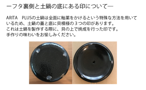 アリタプラスの職人集団の中の安楽窯の土鍋は、一つずつ職人の手で釉薬をかけるため、色ムラや釉薬の流れができることがあり、それがまた手作りの”味わい”となってお楽しみいただけます。生活の中の自然の存在の佇まいを演出します。ご飯のほか煮物にも便利。食材のうまみを素直に引き出す道具が調理の仕方をリードします。