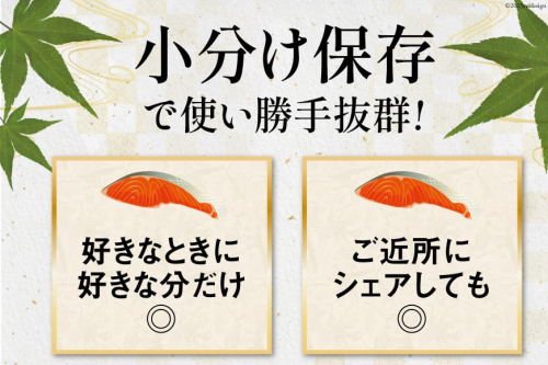 鮭一切れ一切れを冷凍しているので、お好みの量で小分け保存し、必要な分だけ解凍、調理することが可能です。