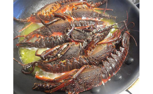 伊豆今井浜の綺麗な海で収穫された伊勢海老を、獲ったその日に急速冷凍しました。