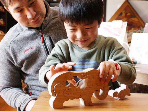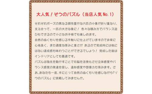 - 象が象で出来ている象の木製の知育パズルが入っています。おもちゃの材質はブナ材 日本製 psc