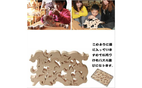 - 猫の自由積み木 象のサーカスセット 材質ブナ 原産地上田市