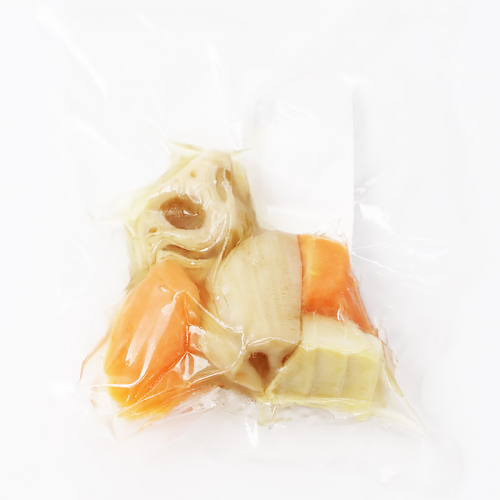 ■原材料名:人参 (国産)、竹の子、蓮根、翌油、本みりん、醸造調味料、砂糖、でん粉、風味調味料(かつお)調味料(アミノ酸等)、(一部に小麦・大豆・さば・ごまを含む)