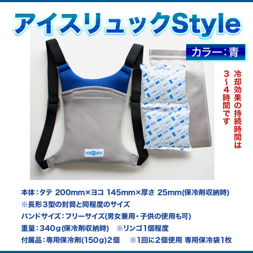 アイスリュック Style 1個 青 保冷剤付き [エムクラフト 福岡県 宇美町 um40azp110003] 熱中症対策 ひんやりクール 冷却リュック 軽量