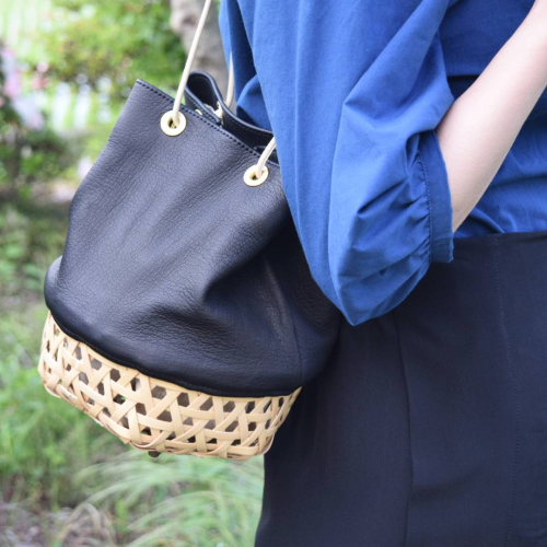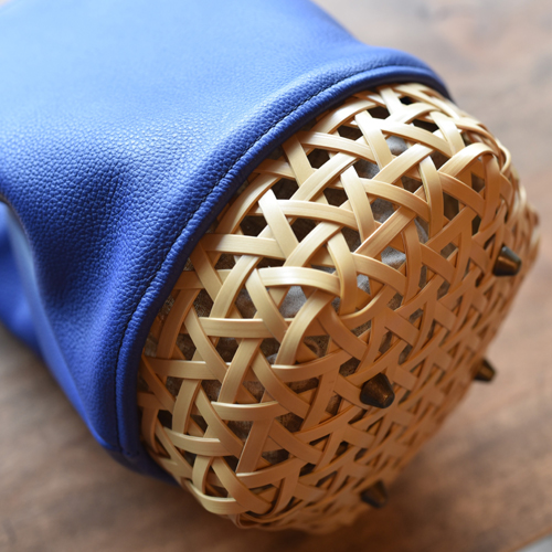 • BB003-1-1 竹と牛革の巾着カゴバッグ ブルー