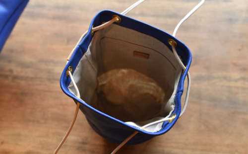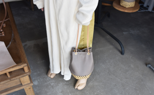 ふっくら柔らかいタイプの牛革を使った巾着カゴバッグです。