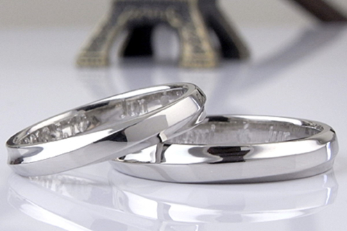 斜めのラインが上品でシンプルなデザインの結婚指輪です。(男女共通)