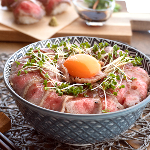 牛肉:A5ランクBMS10から12で、オレイン酸含有量が多く甘みのある、黒毛和牛使用。